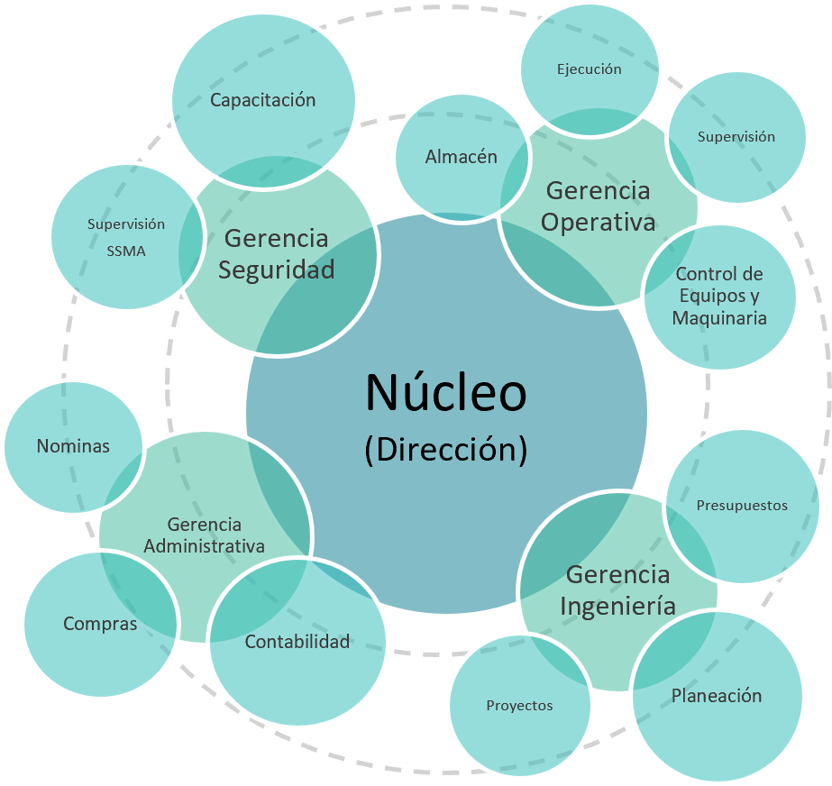 Como empresa innovadora, nos hemos desprendido de los tradicionales organigramas y adoptado un enfoque futurista mediante el uso de un sistema atómico. Este sistema fortalece la colaboración entre todos los colaboradores, dirigidos por un núcleo común con el objetivo de trabajar juntos en lugar de seguir una estructura jerárquica. Alentamos la participación de líderes que contribuyan a un intercambio de ideas y opiniones que mejoren tanto la satisfacción de nuestros clientes como la eficiencia de nuestra empresa.